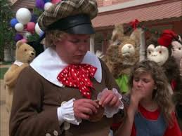 The most unfortunate implied message of the movie, however, is that people cannot be rehabilitated once they possess a certain amount of evil. The explicit message provided by the Toymaker, a pseudo-Santa Claus played by the great Japanese-American actor Noriyuki “Pat” Morita, is that evil and good are odds in us all. The Toymaster first plans to save the town from Barnaby by finding a way to remove the evil from Barnaby to store in his flask of evil from around the world. But this plan backfires, and instead Barnaby steals the flask of evil and unleashes it on our hero foursome to try and turn them evil. Here, we gain the other half of the implied message – that by fighting the evil within (or hailing from Cincinnati), the good within you will always win out.