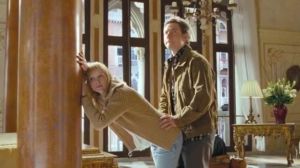 I do applaud the film for largely steering clear of sexual harassment and other typical misogynist traps. For example, in all three workplace romances where the male colleague is the boss, the female makes the first move – Natalie for the Prime Minister (Hugh Grant), Mia for Harry, and Aurelia for Jamie. When the male colleague makes the first move – in the case of Karl (Rodrigo Santoro) for Sarah and John (Martin Freeman) for Judy (Joanna Page) – the pair are of seemingly equal, or at least unrelated, footing in their workplace. However, the more fantastical (yet also, sadly, realistic) characters Billy Mack and Colin Frizzle (Kris Marshall) make extremely misogynist remarks, Billy Mack even claiming a fellow, female pop star to be terrible in bed during a live radio interview.