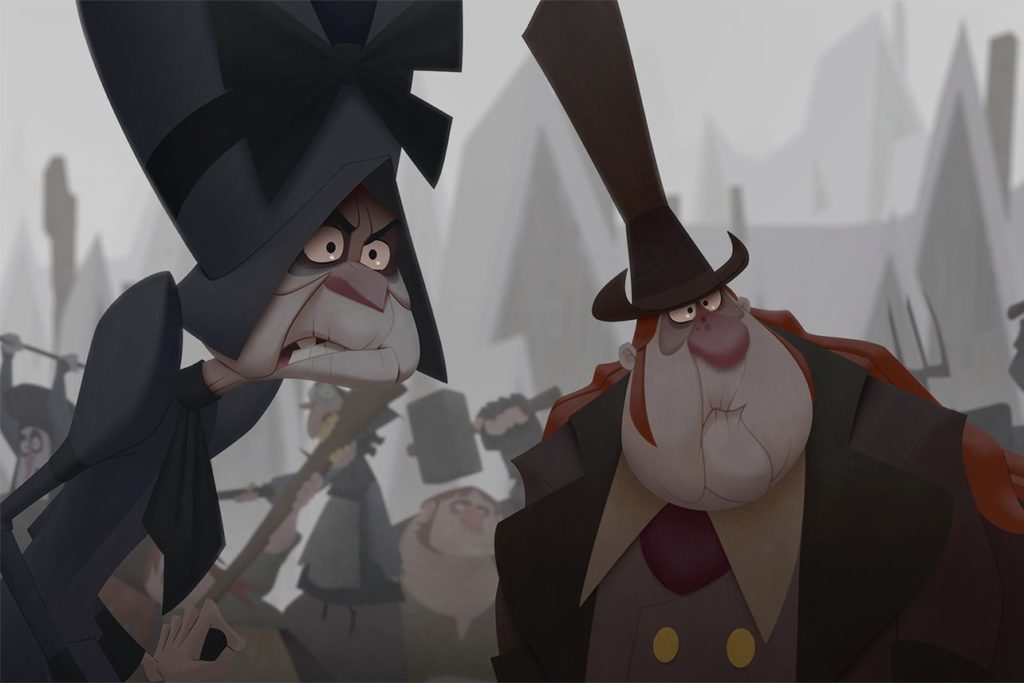 Jesper and his new friend Klaus, a toymaker and woodsman who lives just outside the outskirts of town, bring about this change through the children of Smeerensburg. The implicit messages that most deeply permeate the movie are that social change is often generational, and it must begin with the youth of society. The wedding of the Krum and Ellingboe children at the end of the film perfectly captures the implicit message of generational change. Mrs. Krum and Mr. Ellingboe still clearly long for their feud, but their children have given it up. While the in-laws will likely never get along, the next generation will merely grow up knowing their grandparents don’t spend a lot of time together.