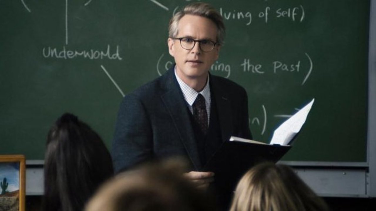 Even before the night of horror begins, Kris encourages her white sisters to keep fighting against the patriarchy no matter the threats the receive or how few people listen to them. Kris, we discover, not only petitioned to have the bust of the college’s founder, racist and misogynist Calvin Hawthorne, removed from the public eye, but she is now also petitioning for the school to fire Professor Gelson (Cary Elwes). Gelson teaches classic literature at the college, and he apparently argued in class previously with Kris over her frustration that he refuses to teach literature written by “women, queer people, or people of color.” Gelson also serves as a faculty advisor of sorts for the DKOs, where the Hawthorne bust ended up after its removal.